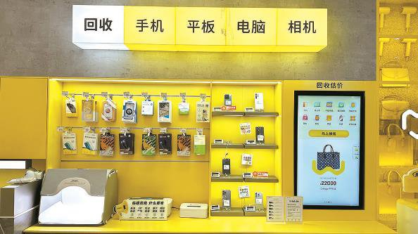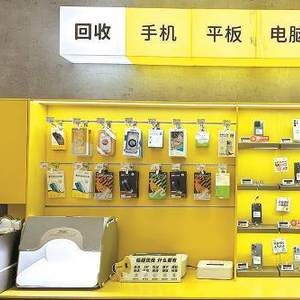 “爱回收”线下店的二手手机售卖柜台
