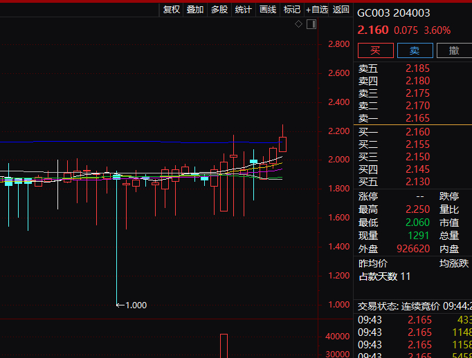 1天国债回购(GC001,代码204001)