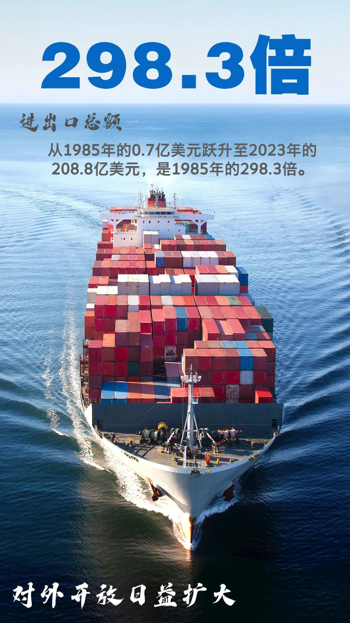 随着改革开放的不断深入,沈阳紧紧抓住经济全球化带来的机遇,加大对外开放力度,全力打造对外开放新高地,积极推进“国际沈”建设,外向型经济加快发展。1985年沈阳进出口总额仅0.7亿美元,1993年突破十亿美元,2011年突破百亿美元,2023年达到208.8亿美元,是1985年的298.3倍。2023年,新开通沈阳至洛杉矶、芝加哥跨境电商全货机航线、沈阳至俄罗斯TIR国际卡车航班,中欧班列开行数量居东北首位。辽宁自贸区沈阳片区35家跨境电商企业开展实际业务,实现跨境电商交易额28.3亿元。