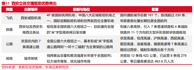 西安具备强势的立体交通体,直贯全国四通八达。西安是国际性综合交通枢纽城市之一,也是面向“一带一路”国际门户的枢纽,是连通中国西北与东南、华北与西南、东部与西部、北部与南部的重要交通枢纽。当前,西安已形成以航空、铁路、高速公路为骨架,连接国际、辐射区域、高效快捷的综合交通运输网络,“12小时交通圈”覆盖中国经济最活跃的城市区域,为西安的经济腾飞提供机遇。