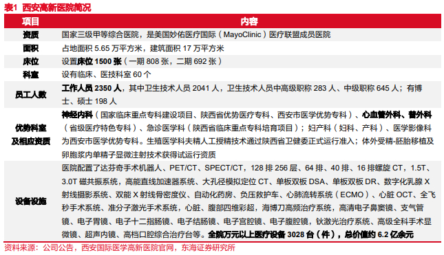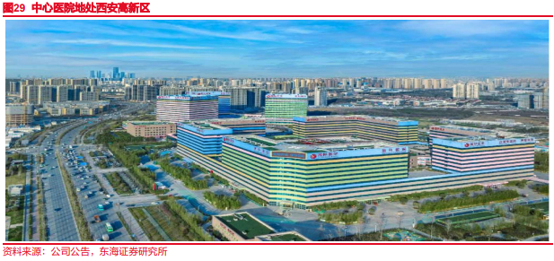 深耕医疗20余载,服务能力辐射西北地区。西安高新医院成立于2002年,是全国首家社会办医三级甲等医院,2021年成为美国妙佑医疗(Mayo Clinic)联盟成员医院。建院22年来,高新医院打造了7大专科病院、众多优势专科、10个诊疗中心和7大危重抢救中心,合计拥有临床、医技科室60个,床位1500张。高新院区是高新区核心医疗资源之一,经过多年深耕,已经在区域内拥有享誉西北的影响力,据公司披露2023年第三季度高新医院外地患者就诊人数占比达31.31%。