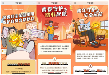 在线上方面,平安证券则利用数字化运营手段,针对青年、中年和老年三类不同的投资者群体,制作了一系列创意投教作品,通过寓教于乐的方式帮助他们学习金融防范知识,识破金融骗局。