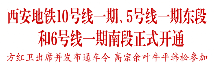 西安地铁10号线一期、5号线一期东段和6号线一期南段正式开通