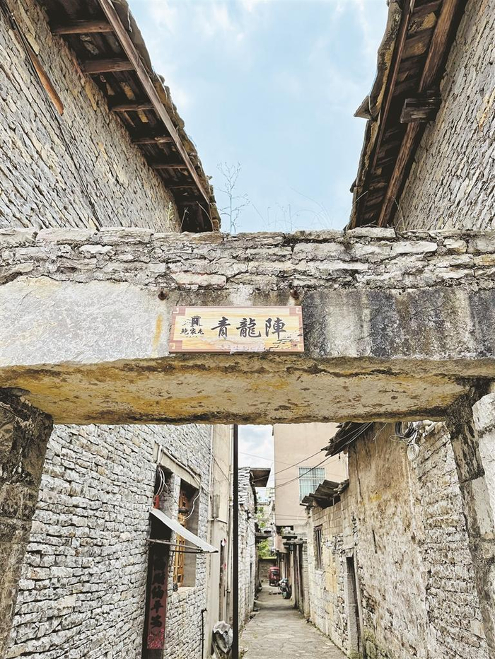 古时的军事防御功能,在鲍家屯的内、外八阵的布局上一目了然。几百幢坚固的石头房屋和巷道构成的“内八阵”,包括青龙阵、白虎阵、长蛇阵、雄狮阵、玄武阵、金鱼阵、鹿角阵、火牛阵,一溜名字听起来就让外来者瑟瑟发抖,仿佛瞬间已经深陷“迷魂阵”;“外八阵”则是利用寨墙外四周的山峰和河道,以石墙、碉堡、岩石、壕沟和河沟构筑成的八道外围防御阵地——又要安全地活着,又要安适地生活,这可太难了。《黄帝宅经》里“以形势为身体,以泉水为血脉,以土地为皮肉,以草木为毛发”的理论,在鲍家屯这里得到落实。它后有靠山,前有流水,侧有护山,远有秀峰,筑基宽坦,水口紧锁,与环境融为一体,同时又具备实用功能和个性色彩。600年之后,承载并沉淀着“大时代里的小人物”的命运和情感的它,俨然已是一件被时光和历史塑造的“大地艺术”。