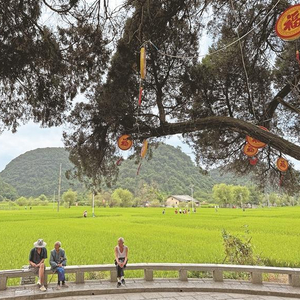 妇女经过的河坝,还有水碾房,就是被水利专家誉为“袖珍都江堰”的鲍家屯古水利工程。600多年前明洪武年间“调北征南”落户此地的鲍家屯先祖,究竟是怎样的智勇双全。除了驻军身份,他们还是建设家园的一把好手——为使鲍家屯村寨周边农田安然无恙,让自己衣食无忧,他们结合河道与村寨农田的地形地貌,着手修建了这个至今仍在发挥作用的泄洪抗旱工程。水仓大坝、鱼嘴分流大坝、回龙坝、水碾坝……每一道都是天人合一的智慧。鲍家屯及周边村落千余亩稻田,因此连年旱涝保收。