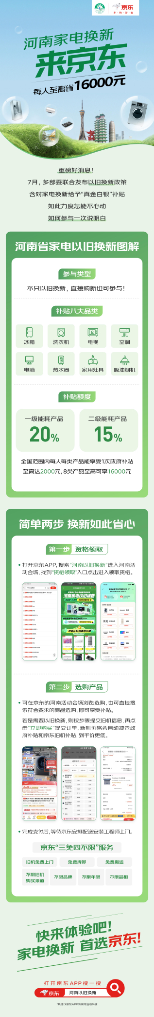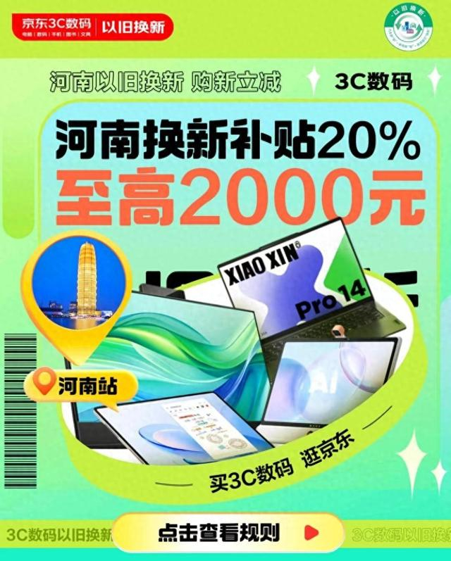 河南消费者记得来京东APP搜索“河南以旧换新”进入活动页面领取资格,购电脑享补贴至高2000元。