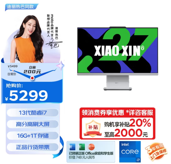 一体机可以考虑联想小新一机27英寸 2024 酷睿版。27英寸大尺寸屏幕,不仅画面细腻、色彩丰富,还通过莱茵低蓝光、无频闪双重认证,视觉体验出色。配置直播级2.5K高清晰度摄像头,配合智能算法降噪双麦克风、联想视觉软件,听网课、视频会议等视频效果都很好。标配天骄学堂学习平台,同时支持家长远程监控,适合有孩子的家庭使用。联想小新一体机27英寸i7-13620H 16G 1TB SSD京东价5299元,享受河南家电以旧换新补贴额外立减1059.8元,最终到手价4239.2元。