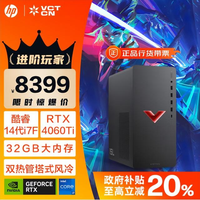 想买台式机可以选择惠普暗影精灵10台式机主机。其搭载酷睿14代i7-14700F,20核心28线程,配合GeForce RTX 4060 Ti,游戏体验好,还能加速创意工作流。采用双热管塔式风冷,CPU温度低、风噪小,使用更舒适;500W 80 PLUS电源,保障处理器和显卡满血输出;1TB PCle 4.0 SSD,数据读取速度快;预装OMEN Gaming Hub,从网络、灯光等方面提升游戏体验;支持WiFi 6,采用双频双天线,网络延迟低。惠普暗影精灵10台式机主机 14代i7F 4060ti 32G 1TB 500W京东价8399元,享受河南家电以旧换新补贴额外立减1679.8元,最终到手价6719.2元。