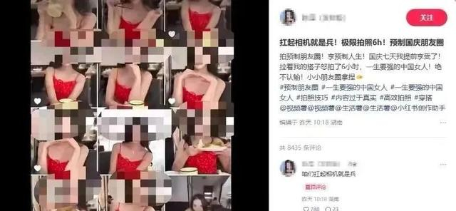 热榜话题下,博主挑战“一天拍完国庆7天朋友圈”的视频得到了18.7万赞。视频中,她从下午三点开始拍到晚上,6个小时拍了1536张照片。“国庆七天我提前享受了!”