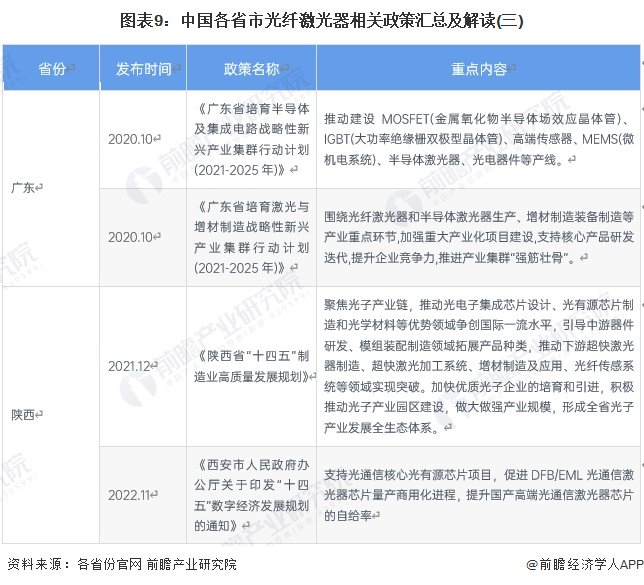 ——31省市光纤激光器行业政策汇总