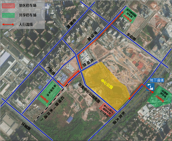 东莞中心公园、东莞植物园、水濂山森林公园、碧玉湖公园因节假日期间人流、车流激增,为缓解景区周边“停车难”问题,提升市民群众的出游体验,南城街道协调周边停车场作为“十一”假期期间共享停车场,市民可根据工作人员指引,前往周边共享停车场停车。
