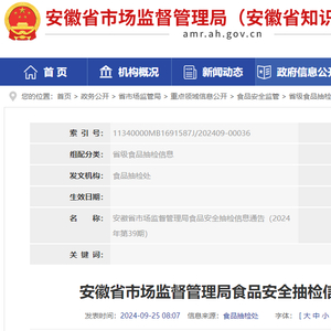 安徽省市场监督管理局食品安全抽检信息通告(2024年第39期)