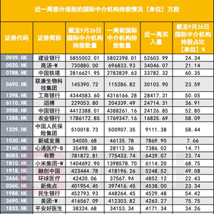Wind数据显示,以国际中介机构持股数量为口径统计,截至9月26日,全市场有国际中介机构持股的港股共有2632家,近一周买入港股的外资机构共1001家,占比约38.03%。