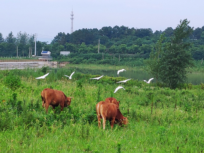 为了防止污染,秦俊告诉记者,会对鸡舍和运动场的排水实施三级净化,最终引入蓄水池。“水池内种植和养殖的大量喜肥的水生植物和动物,能够进一步优化水质。水池的蓄水可以用于日常农田浇灌以及抗旱补水。这样就有效防止了养殖污水环境污染,遏制了细菌传播。”秦俊说。