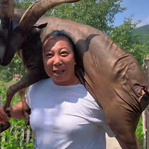 “东北雨姐”扛羊子,热情“彪悍”的风格深受粉丝喜爱。图片来源/平台视频截图