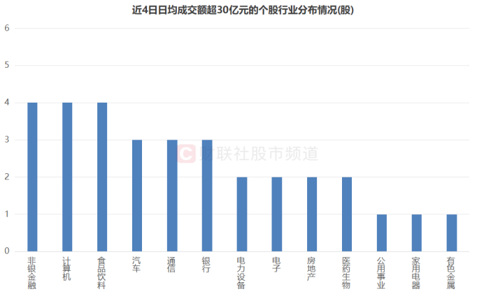 注:近4日日均成交额超30亿元的个股行业分布情况(截至9月27日收盘)