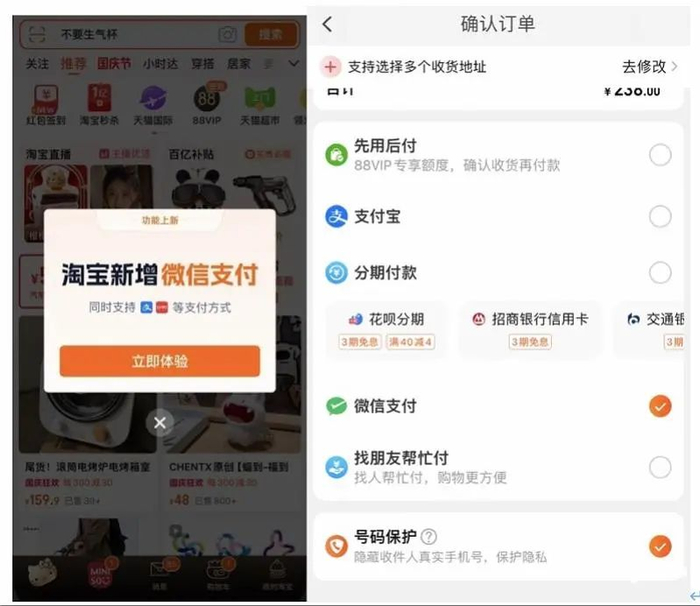 淘宝多了微信支付选项