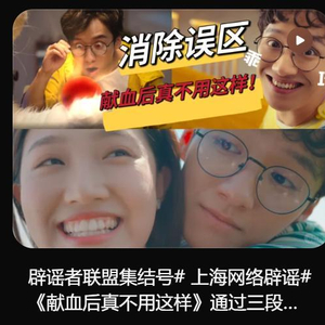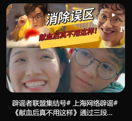 例如,上海市血液中心发布了《献血后真不用这样》,通过三段有趣的视频,打消如“献血后要大吃大喝”、“献血后不能动”、“献血后要吃补药”等常见误区;而上海市东方医院口腔科也通过演绎的形式,科普了“拔牙能瘦脸?”等常见的口腔误区。
