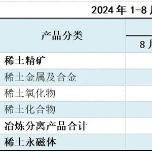 四、1-8月稀土冶炼分离产品进口量同比下降近24.4%