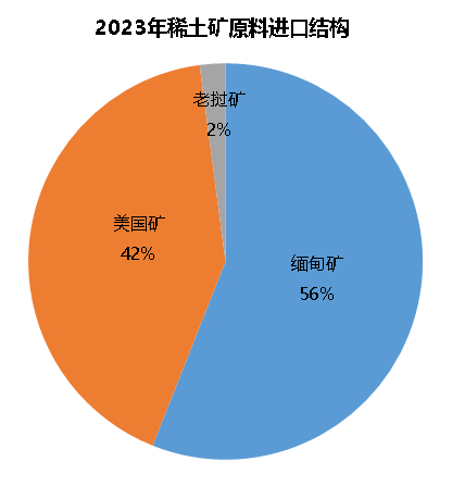 在稀土冶炼分离产品进口中,稀土氧化物和稀土化合物主要作为中间原料在我国进行进一步的冶炼分离加工。在其中,缅甸、老挝等东南亚国家生产的离子型稀土矿为主,成为了国内重要的稀土原料来源之一。