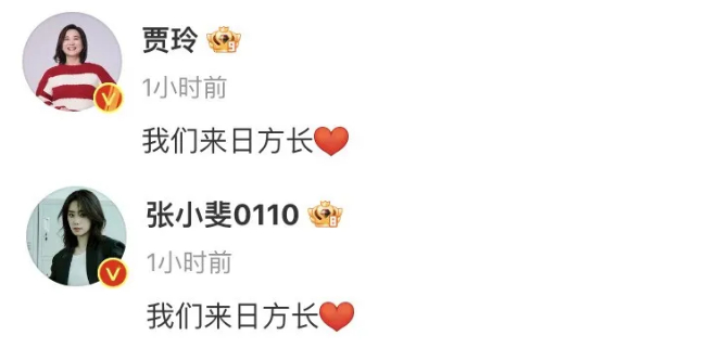 随后,贾玲、张小斐等人转发该博文并表示:我们来日方长。