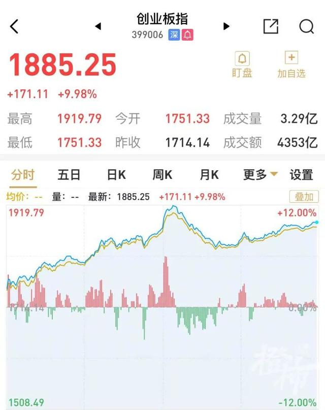 午后13:09分,创业板同样创下一个纪录:该指数盘中拉升超11%,创历史最高纪录。之前的两次涨幅高点是:2023年8月28日创业板指开盘一度涨近7%,2024年2月6日尾盘一度涨近6.77%。