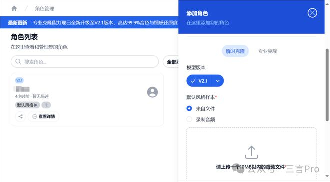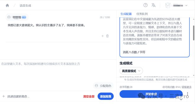 三言也用该AI语音平台实测了下,看看能否复现录音门。