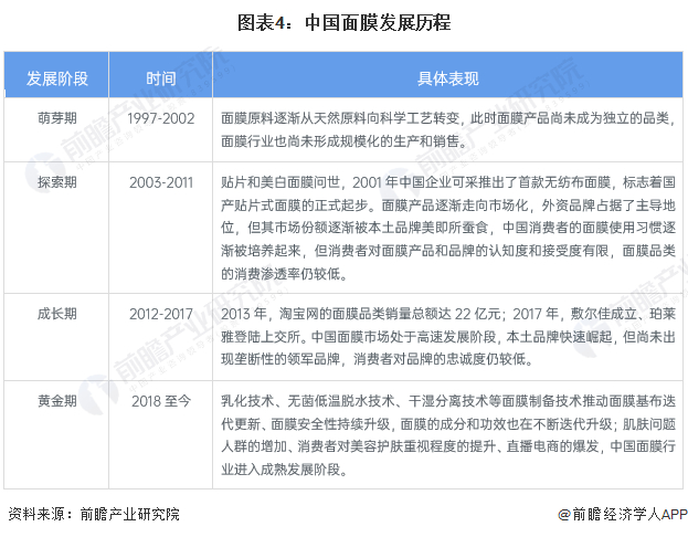 行业发展历程:中国面膜行业整体上步入成熟发展期