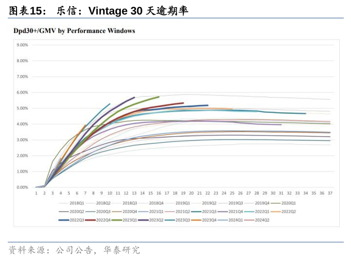 Vintage曲线体现平台不同时期放款的质量,从结果上部分反映出平台较强的风控意愿。根据Vintage曲线,我们观察到3Q23和4Q23发放贷款的逾期率最高,但1Q24所发贷款的风险表现则较好,反映出平台在提升贷款质量上的努力。乐信是个例外,可能因其在1Q24时仍在风控系统重塑的初期。