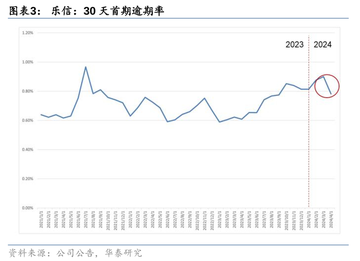 3) 乐信的贷款质量在2Q24明显改善,30天首期逾期率重回0.8%以下,另外6月的首日逾期率相比4月降低了7%(幅度)。