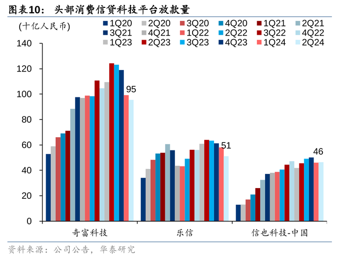 我们预计下半年平台的贷款质量仍将持续好转,这是因为贷款质量好转后部分平台的投放策略可能相对1H24更积极,通过率和授信额度可能有所提升。行业内复借率较高,在80%以上,并且可能存在一些借新还旧的情况,因此我们预计下半年更充裕的流动性或将推动平台贷款质量改善。另外在当前宏观背景下,尽管投放策略变积极,但谨慎经营或仍然是大前提,我们认为平台仍会在意愿上重视提升贷款质量,并在能力上持续迭代自身风控体系,最终实现贷款质量改善前提下的相对积极投放。