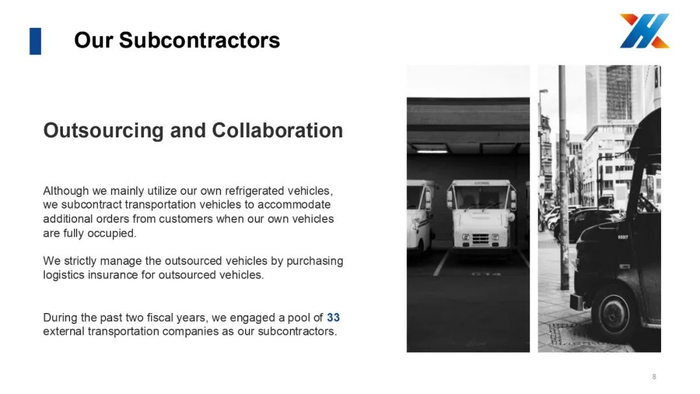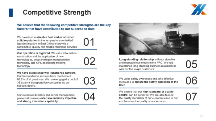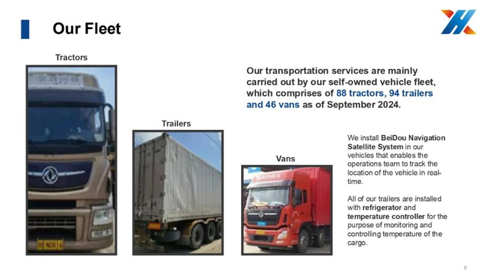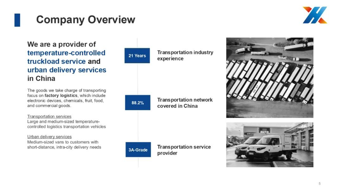 昊鑫国际物流,作为一家冷链整车服务和城市配送服务提供商,在运输行业拥有超过20年的经验。公司于2003年开始城市配送服务业务,并于2016年开始将业务拓展至冷链整车服务。公司负责运输的货物主要是工厂物流,包括电子设备、化学品、水果、食品和商业货物。经过不断发展,公司已被中国物流与采购联合会认定为3A级运输服务商。