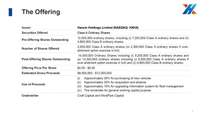昊鑫国际物流计划发行200万股普通股,每股发行价介于4至6美元,募资规模在800万至1200万美元之间。