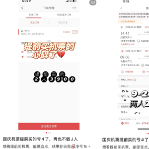 在社交媒体上看到,不少旅客发帖反馈,提前一两个月下单国庆节机票,结果节前一段时间查看票价,发现价格出现大幅下滑。