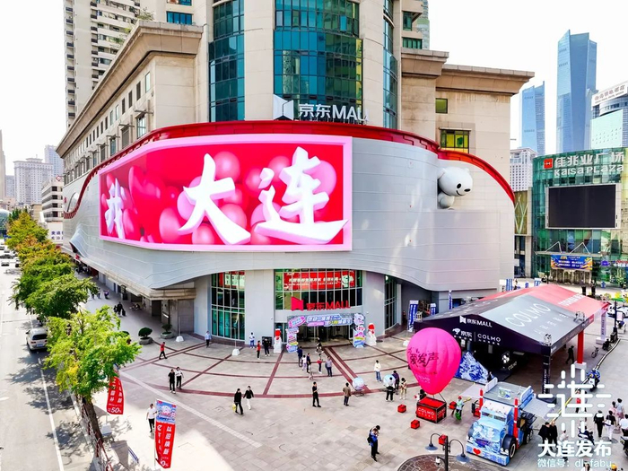大连京东MALL坐落于原天津街新世界百货,营业面积近5万平方米,在设计上引入海浪元素,无论是位于外墙的裸眼三D大屏,还是店内的高达33米的高清屏幕,面积在全国在建的京东MALL中都居于首位。