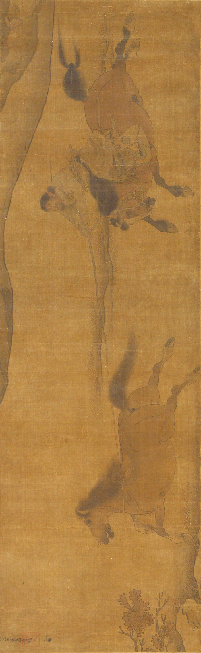金杨微《二骏图》,以“一骏纵逸不受羁”为题材,运用浑厚豪放的艺术手法,塑造了女真人牧马的形象,刻画生动传神。