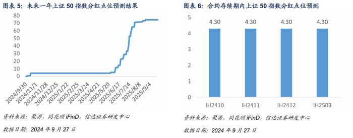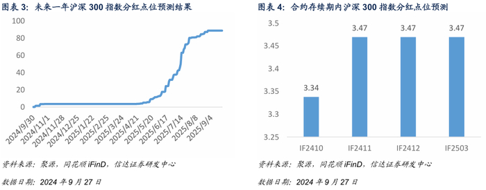 基于信达金工衍生品研究报告系列二《股指期货分红点位预测》中的方法对股指期货合约存续期内分红进行预测。