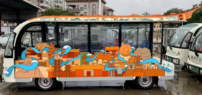 作为泉州公交的重要成员,古城“小白”观光车一直承载着便捷观光的交通重任,同时也是展示泉州古城文化特色的重要窗口。此次新车由华侨大学美术学院设计,充分挖掘泉州作为中国海上丝绸之路起点的历史背景,将传统文化元素与现代审美理念相融合,为市民和游客呈现出一系列独具匠心的作品。