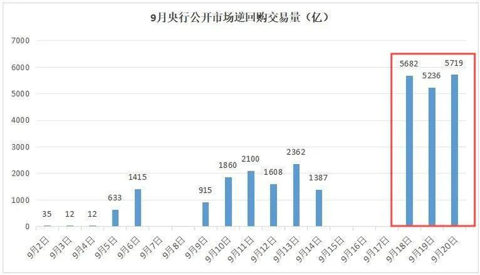 从下图可以看出,9月18日逆回购5682亿,9月19日逆回购5236亿,9月20日逆回购5179亿。