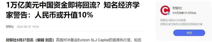 根据外汇管理局公布的数据,自从2020年以来,中国只有7000亿美元换成了人民币回到国内。有超过2万亿美元、折合人民币14万亿的天量资金留存在海外,没有结汇!