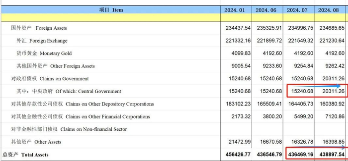 这一点从8月份央行的资产负债表可以明显看出来,“对中央政府债权”这一科目,环比7月份增加了5070亿!也就是说,多少年来都一直按兵不动的央妈,8月份一下子增持了5070亿的国债,相当于短短一个月时间向市场投放了高达5070亿的基础货币 ,为接下来的持续增持放水,开了个好头。