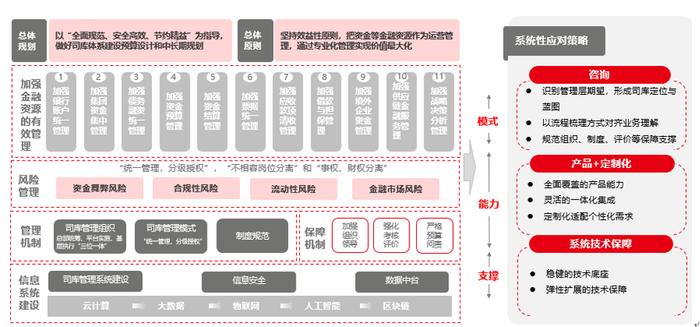 整体规划:总部统一部署,横向集成、纵向贯通的司库统一平台,实现司库管理全事项、全流程的信息化、数字化和智能化。