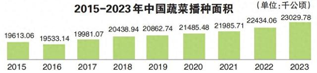 国家统计局近期发布的数据显示,改革开放初期我国蔬菜播种面积还不足5000万亩,到2023年全国蔬菜播种面积已达到3.4亿亩,产量8.29亿吨,在播种面积和产量上,中国连续多年居世界首位。中国工程院院士邹学校在署名文章中提到,目前我国普遍栽培的蔬菜达到50种,主要集中在十字花科、葫芦科、茄科、伞形科、豆科、百合科、菊科、藜科八大科。数据显示,目前中国蔬菜登记品种多达19405个。现在,市场上的蔬菜琳琅满目,消费者的选择也越来越多。