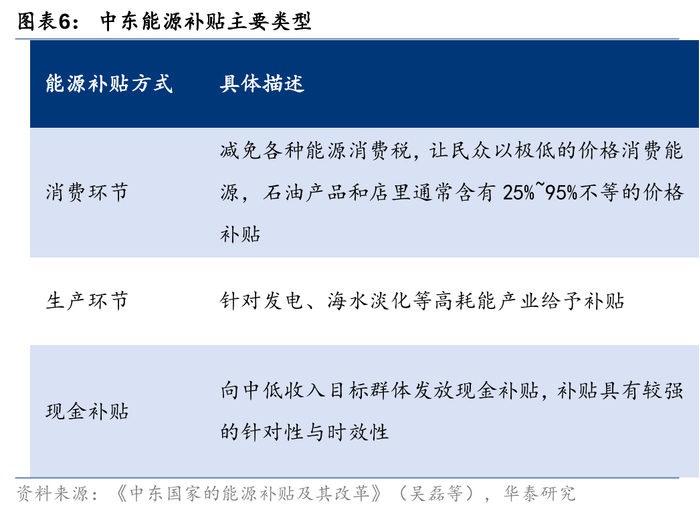 能源补贴逐步退坡,可再生能源经济性逐步显现。能源补贴虽然在短期内对社会起到了积极作用,但长远来看显现出不少弊端。首先,能源低价鼓励了能源的过度使用,导致能源消费的急剧增长和资源浪费。其次,补贴扭曲了市场价格,阻碍了节能投资和节能行为,降低了下游产业的竞争力。此外,能源补贴还给政府财政带来了沉重的负担。以伊朗为例,根据IEA统计,伊朗在2022年的传统能源补贴总额高达1269.6亿美元,占其国内生产总值的36%。因此,各国政府均在逐步对能源补贴进行退坡,随着能源价格的上升以及能源定价机制的市场化,中东地区可再生能源投资的经济性将逐步显现。