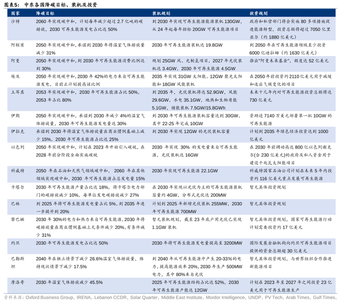 中东储能的核心需求点在于配套新能源建设。各国政府的可再生能源目标偏激进,目标时间节点多为2030年,近年间可再生能源的部署节奏将对储能的需求产生较大的直接驱动。