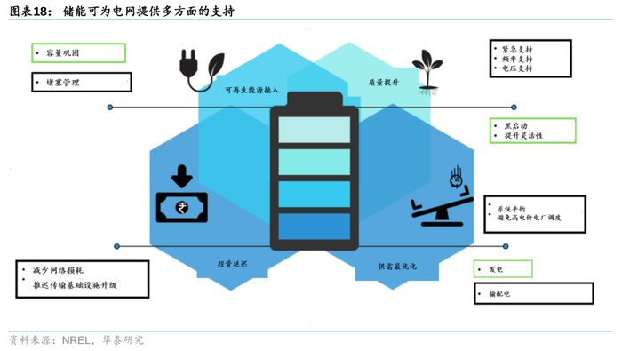 1)中国可再生能源占比相对较高,但是发电端和用电端存在地域不匹配问题,可再生能源的消纳依靠高压输电线路实现西电东输或者配套储能就地消纳,电网为强大的统一大电网,电力市场化程度偏低,储能以解决消纳为主,盈利模式不成熟,因此各省网给的政策支持为主要驱动因素。