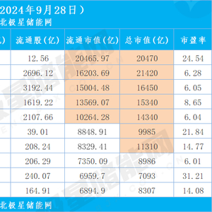 据同花顺、东方财富等数据显示,截至2024年9月27日,市值排名前十的企业有中国石化、宁德时代、长江电力和中国神华四家能源相关企业。而在市值规模超万亿的7家公司中,仅有宁德时代一家新能源企业。9月27日,宁德是的盘中股价最高达231.68元/股,总市值超11256亿元,截至当日收盘,宁德时代报价226.81元/股,较开盘价184.44元/股、涨幅达23.04%。