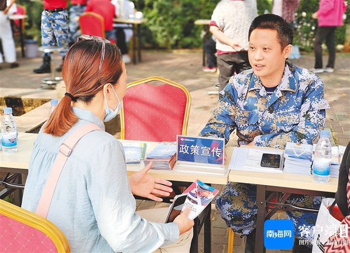 海南省退役军人服务中心工作人员宣传退役军人政策。
