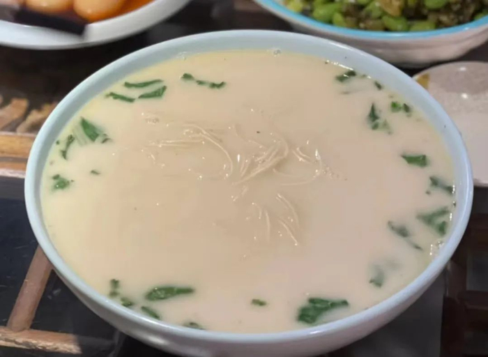 鱼汤选用鲫鱼、鳝鱼骨和猪骨头熬制