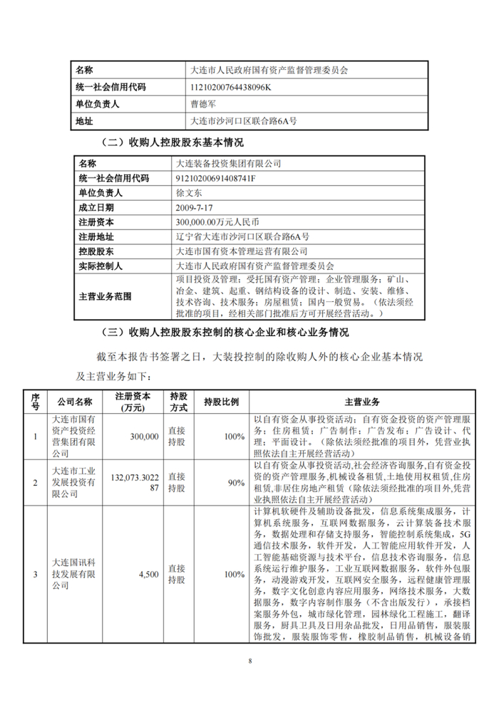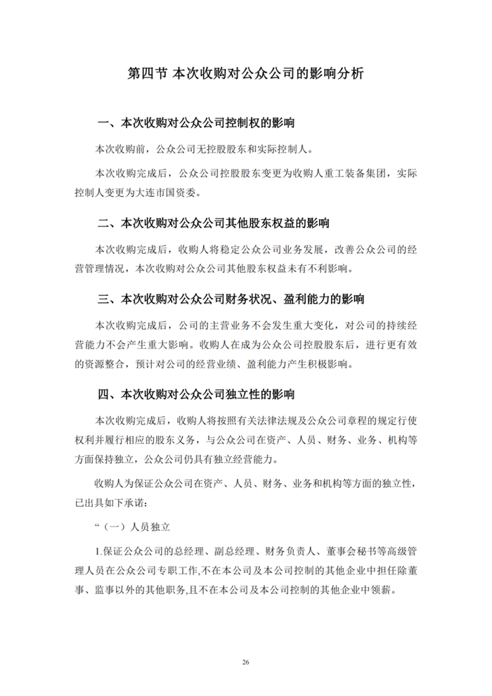 本次收购前,公众公司无控股股东和实际控制人。本次收购完成后,公众公司控股股东变更为收购人大连重工装备集团,实际控制人变更为大连市国资委。